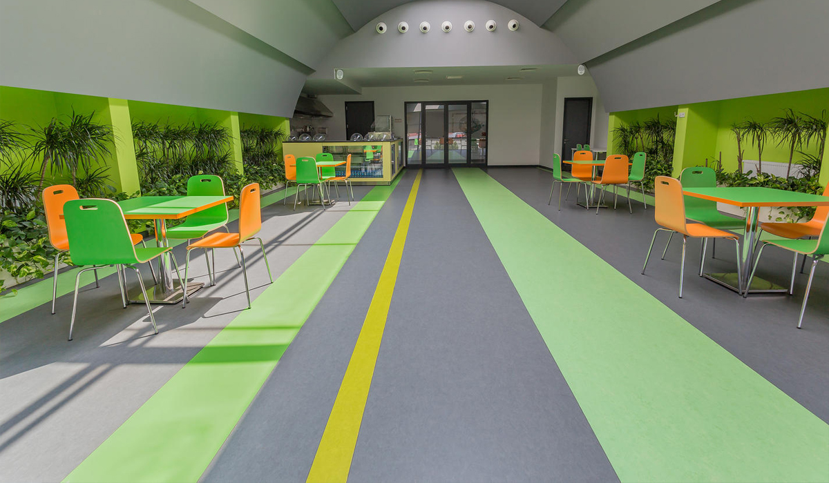 1. Estetik Çeşitlilik: PVC zemin kaplamaları, geniş renk ve desen seçenekleri sunarak okullara renkli ve estetik bir atmosfer katar.
